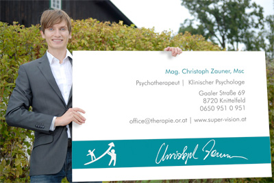 Mag. Christoph Zauner, MSc stellt seit 2012 seine Erfahrung und Kompetenzen als Supervisor und Coach zur Verfügung. Im selben Jahr eröffnet er die Praxis für Supervision und Coaching. Seit 2007 arbeitet er selbstständig als klinischer Psychologe und Psychotherapeut. Er begründet 2010 die Praxis für Psychologie und Psychotherapie mit ihrem Sitz in Knittelfeld. Die Praxis hat als Schwerpunkt die Begleitung von Erwachsenen, Kindern, Jugendlichen und Familien bei der Überwindung von schwierigen Situationen und bei persönlichen Veränderungen. Spezielle Erfahrungen durfte Mag. Christoph Zauner, MSc in den Bereichen der Familienberatung, Arbeit mit Menschen mit Behinderung, im Krankenhaus, der Psychiatrie, der Psychosomatik, mit Menschen mit den Diagnosen Posttraumatischer Belastungsreaktion, Essstörungen und Somatisierungsstörung und Erfahrung institutioneller Erziehung sammeln.